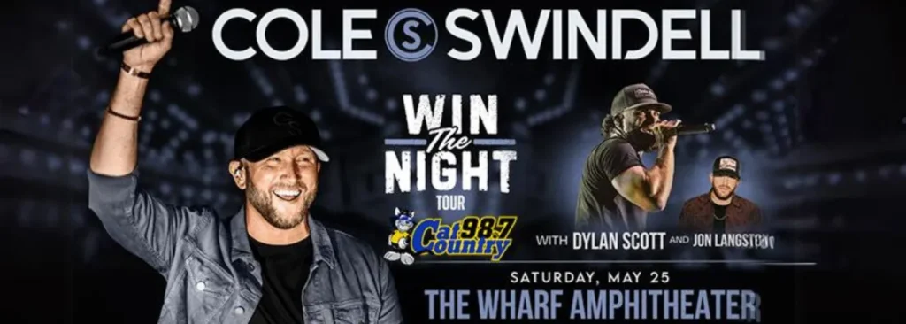 2024 marks a year of celebrations for country icon Cole Swindell, who’ll be commemorating his first album’s 10th anniversary while ushering in his much-anticipated fifth one. And so, he’s firing off a tour titled “Win The Night” to drum up hype, targeting eighteen venues in a month-long trek across North America, which includes a May 25th show you shouldn’t miss at the Wharf Amphitheatre with special guests Dylan Scott & Jon Langston!